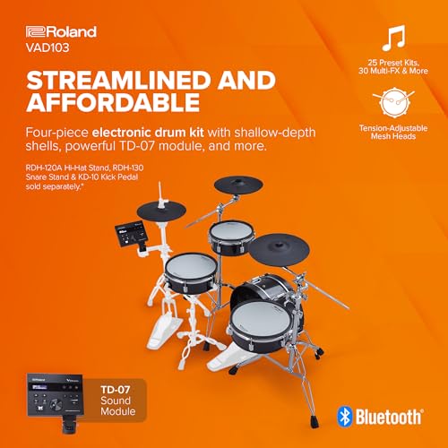 * Groove Comes First - 7-piece electronic drum kit with dual-zone all-mesh heads, Active Magnetic hi-hat control, 7" touchscreen drum module running the legendary BFD sound engine with 75 kits