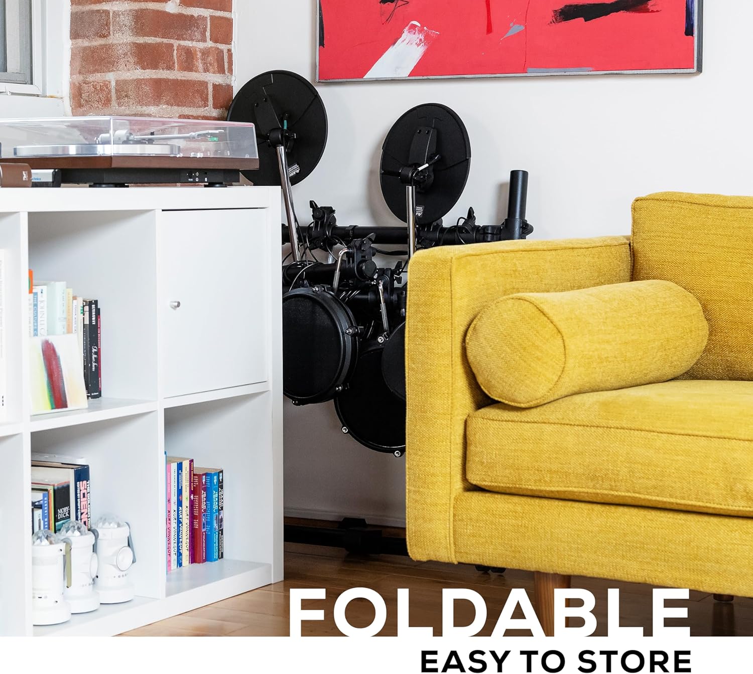 * Compact and Capable - Simplified configuration, 4-post steel rack, 12" snare, 8" kick drum tower, and 10" toms mean this e-kit fits in crowded practice spaces, cramped recording studios, or bedrooms