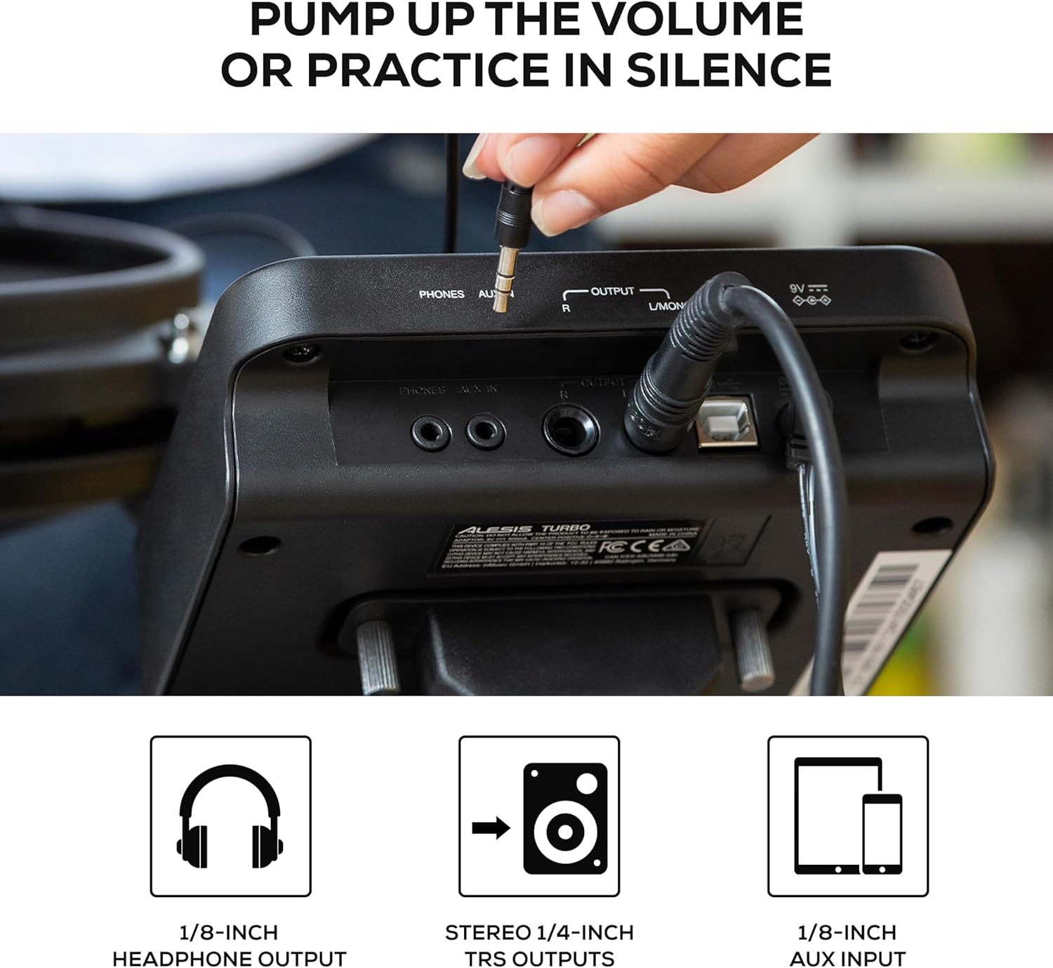 * Level Up Your Acoustic Drum Set - All mesh dual-zone drums plus 360° ARC triple-zone cymbals (12" crash; 14" ride) and 12" hi-hat come ready to integrate e-kit technology into your existing setup
