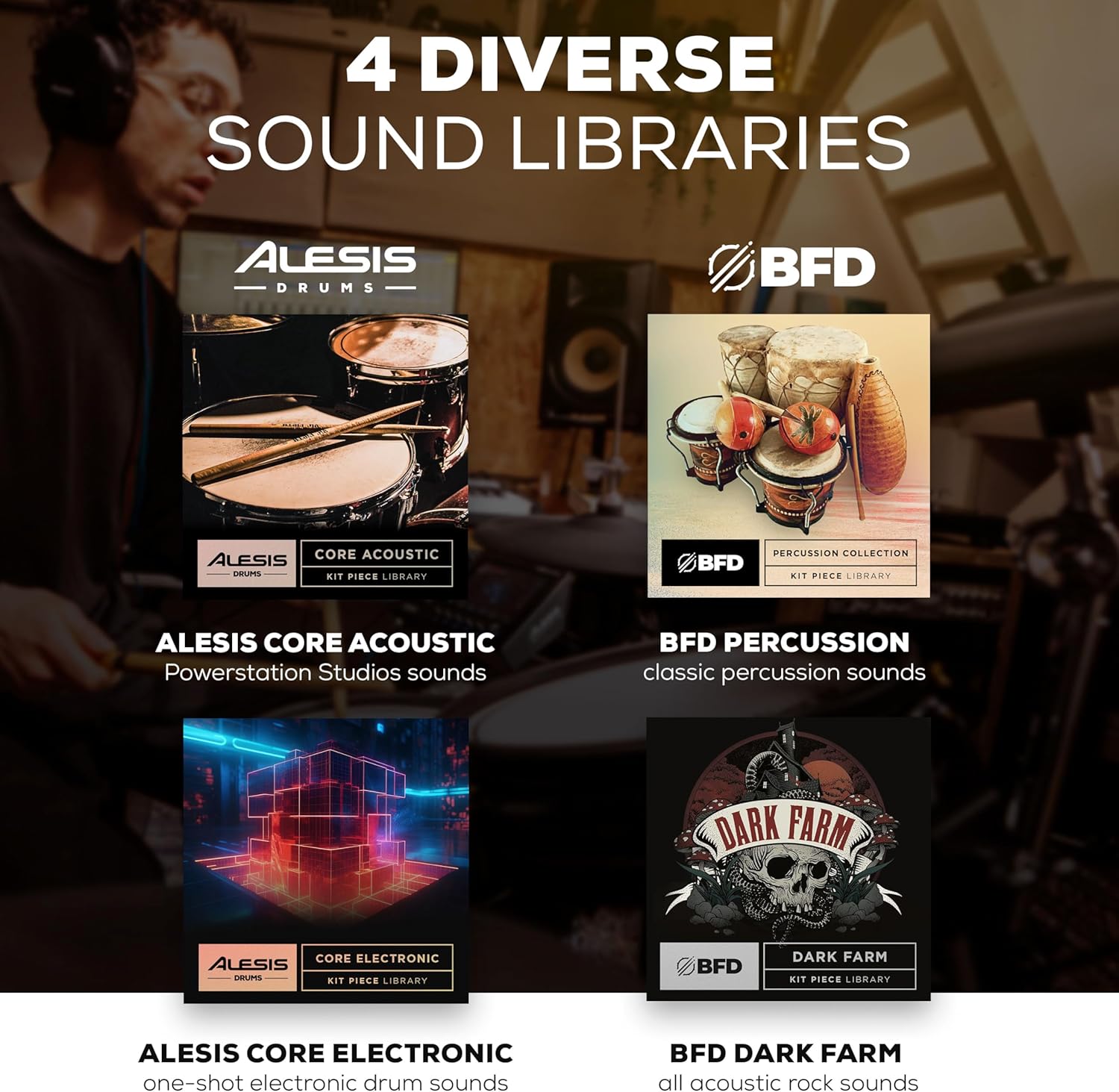 * Diverse Sound Collections - Includes 4 libraries - Alesis Core Acoustic, BFD Dark Farm, Alesis Core Electronic and BFD Percussion; multi-layered factory content to top up the 75 factory kits