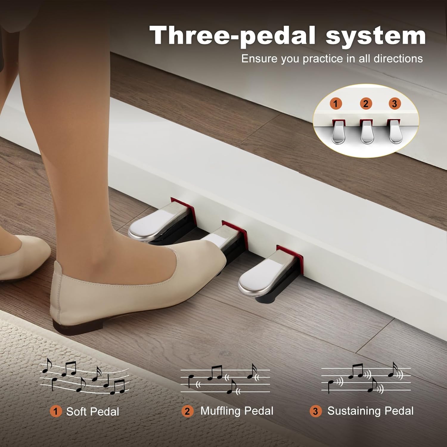 * 🎹 【FURNITURE STAND TRIPLE PEDALS】 DEP-20S digital piano with 88 Full Weighted Hammer Keys simulates the real touch of playing the piano. And there is a Furniture Stand in the package. It also have triple pedals on the stand, which including Sustain Pedal, Soft Pedal and Supersonic Pedal to ensure the quality of your practice.
