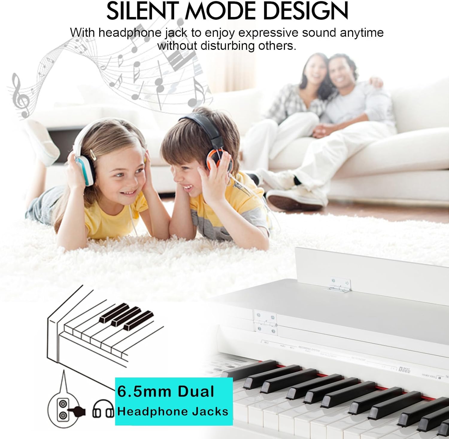 * 🎹【FULL-WEIGHTED 88 Key DOUBLE KEYBOARD】Standard full-size 88 scaled hammer action weighted keyboard. Keys are made of high quality frosted materials, with different levels of touch sensitivity, automatically adjust with your finger strength. This 88 key weighted keyboard provides dual-tone mode for combining two voices together, like piano and drum, inspiring to make a new creation.