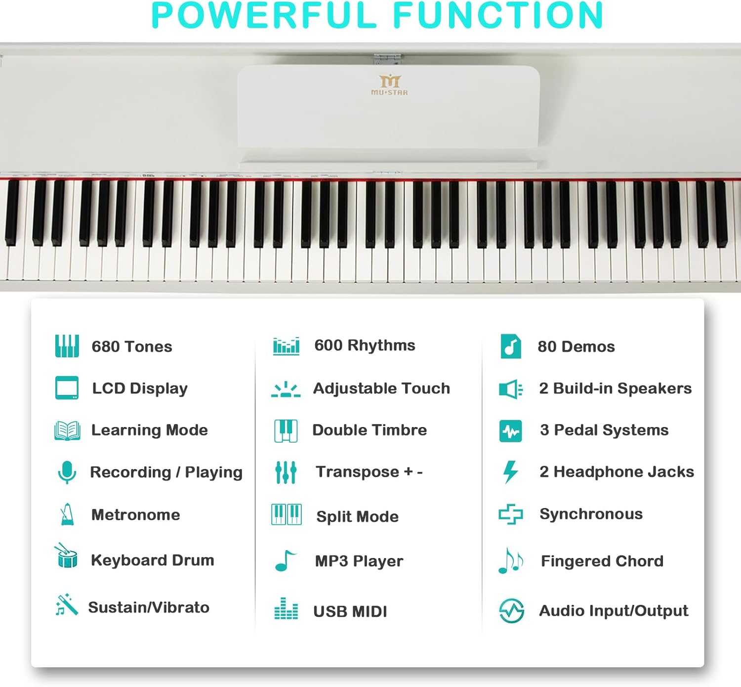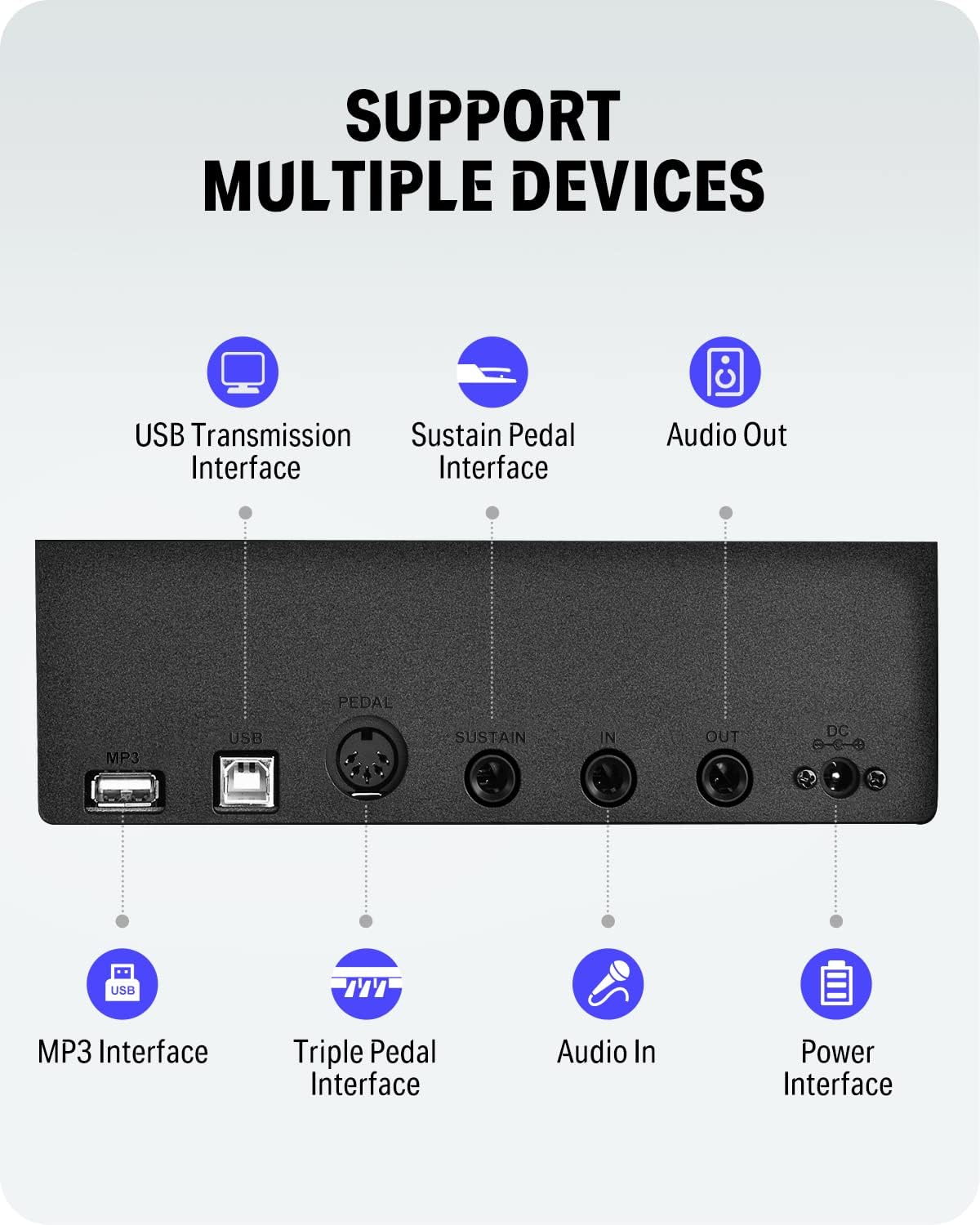 * 🎹【MORE SUITABLE FOR BEGINNERS】Designed for beginners, equipped with a metal sustain pedal included in the package. Pay attention to the difference: Weighted keys have a good balance of tactile and tactile feedback, while fully weighted keys pay more attention to restoring the heaviness of the real piano keys, which is suitable for a transition of later grand piano learning.