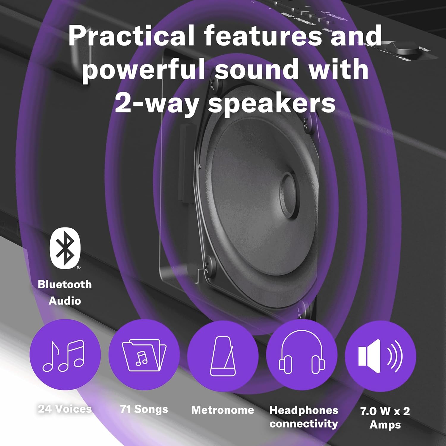 * 🎹【MULTIMEDIA CONTROL PANEL】Feature with a backlit LCD screen for clearly showing chords names, notation and wanted adjusting tones.Support MIDI recording mode, MP3 Player and sustain pedal interface(1/4″ Jack Input).It also includes Synthetical Chord, Metronome, Sound, Demo and Dual Tone function buttons, ect.