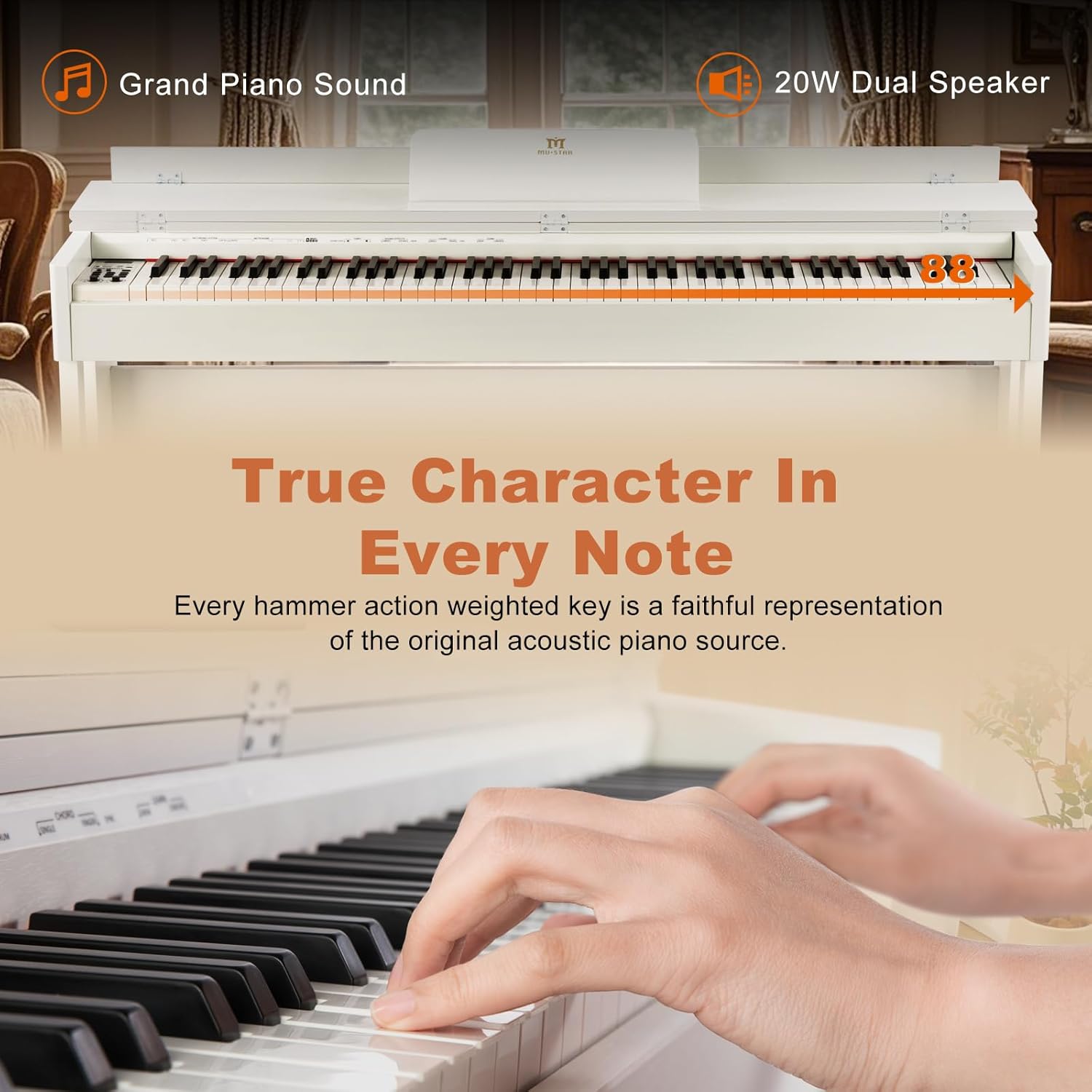 * 🎹【238 TONES & 128 POLYPHONY】The 88-key weighted keyboard loaded with 238 types of tone like Ukulele, drum, bass, etc. vividly presenting voices of different instruments, arousing your keen to learn music. The digital electric piano with 128-note max polyphony, players could distinguish tone clearly in Chorus & Reverb under various occasions.